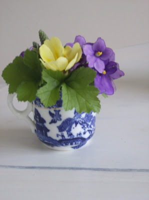 Back to pink and red. I now have decided that I rather like these colours together, perhaps not to wear, but as a combination of colours for decorating my guest bedroom. When combined with white I think it is so fresh and lively a mix, that it will give the guest room that much needed va-va-voom. I will keep you posted on the guest room's makeover.I used these colours for some little posies I was making also.See below.